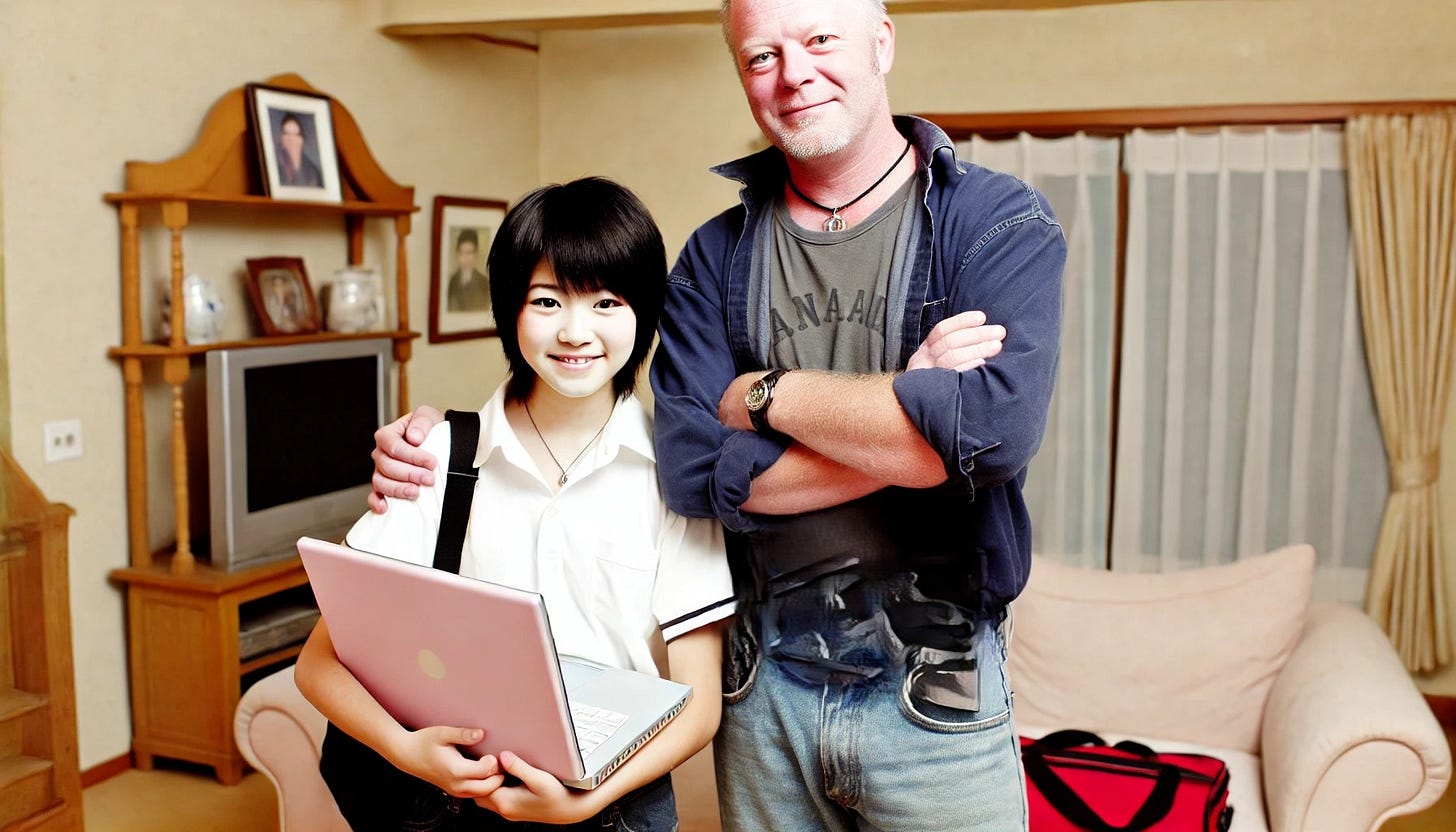 Istvan’s choice to describe the protagonist’s desires as "his sashimi on a hentai platter" brings a disturbing element of fantasy into the mix. Hentai, a genre of Japanese animated pornography, indicates the protagonist’s warped sexual fantasies and the detachment from reality. The imagery of the protagonist needing to "roll his exchange sister’s finger for laptop access" is both grotesque and pathetic, illustrating the lengths to which he goes to fulfill his perverse desires. The use of "kana keys" emphasizes the foreignness and the cultural specificity of the situation, while the hyoid crush at the end starkly portrays the violent climax of the protagonist’s actions.